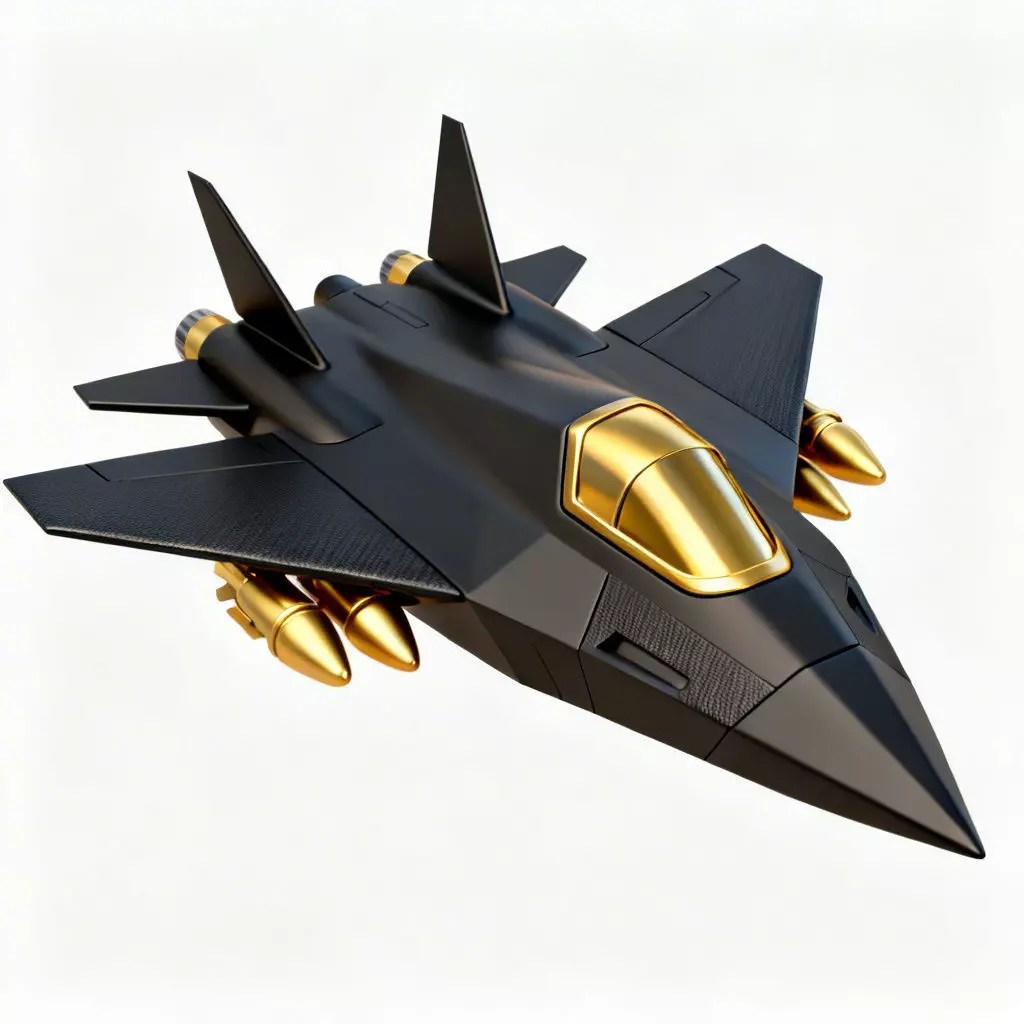 Solid Gold-Chrome CanopyIn line with specialized design preferences, the cockpit is modeled as a solid, opaque gold-chrome surface. This design strictly avoids any transparent glass or crystal materials, providing a high-contrast luxury feel that stands out against the dark fuselage.