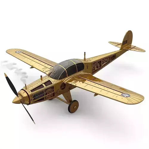Tagssteampunk, aircraft, interceptor, fighter, monoplane, gold, brass, industrial, gears, pistons, engine, 3d model, game asset, vehicle, luxury