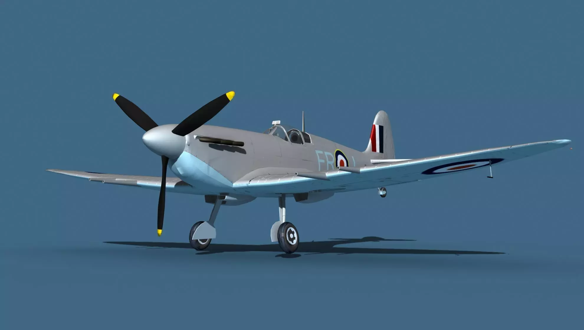 This model is built near to actual scale. It has an animated propeller and animateable features including wheels, landing gear retraction, split flaps, rudder, elevators, ailerons, and propeller. The canopy can be opened to reveal a fairly detailed cockpit. It includes a lot of exterior and cockpit control and instrument panel detail. Model is available in several different formats - Max 2014, 3DS, obj (Blender and Light Wave), dwg, dxf .These models render very well and look very realistic using good animation and rendering technique. It can be used in an animated or static position within an animated video or possibly for programming for a flight simulation application. This model was not designed for 3d printing, these are digital files only. Model is fully textured with all materials UVW mapped and applied. Most materials are planar mapped and major materials include texturing. All textures and materials are included as shown. 3ds Max models are grouped for easy selection, and objects are logically named for ease of scene management.No cleaning up necessary, just drop your models into the scene and start rendering. No special plugin needed to open scene. Liveries are based on actual service liveries. The Supermarine Spitfire is a British single-seat fighter aircraft that was used by the Royal Air Force and other Allied countries before, during, and after World War II.Dreamscape Studios is US modeling firm specializing in building high definition, accurate, and detailed 3D models of commercial, civil and military airplanes and ships. Models are built in low to ultra high polygon count, near to scale and include a good amount of detail. If you need a model in different units other than provided, let us know and we will scale the model for you.