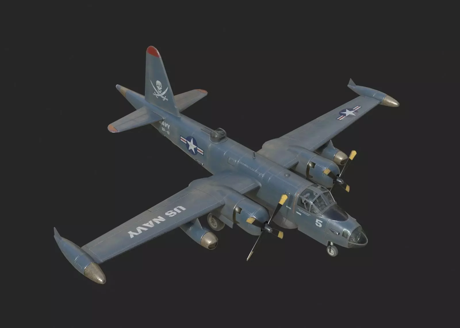 US NAVY P-2 Neptune anti-submersible aircraft Low-poly 3D model