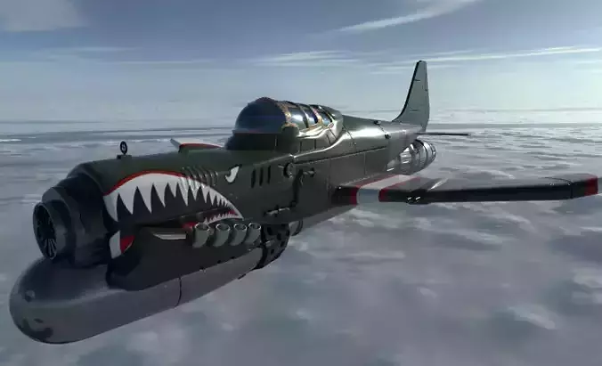 Custom version of a WWII airplane, mixing the F4U Corsair and P-40 Warhawk models.This is a high poly model NOT a 'game ready' model, it would be great to use as a base to build a low poly mesh for games, modeled in Autodesk Maya and textured in Substance painter.