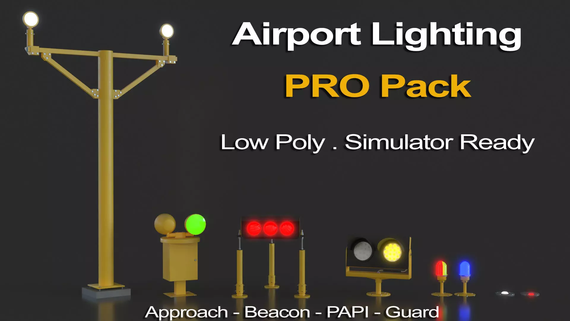 A complete Airport Lighting PRO Pack featuring low-poly, simulator-ready lighting assets for realistic runway and airport environments.Ideal for flight simulators, game engines, and real-time visualization.