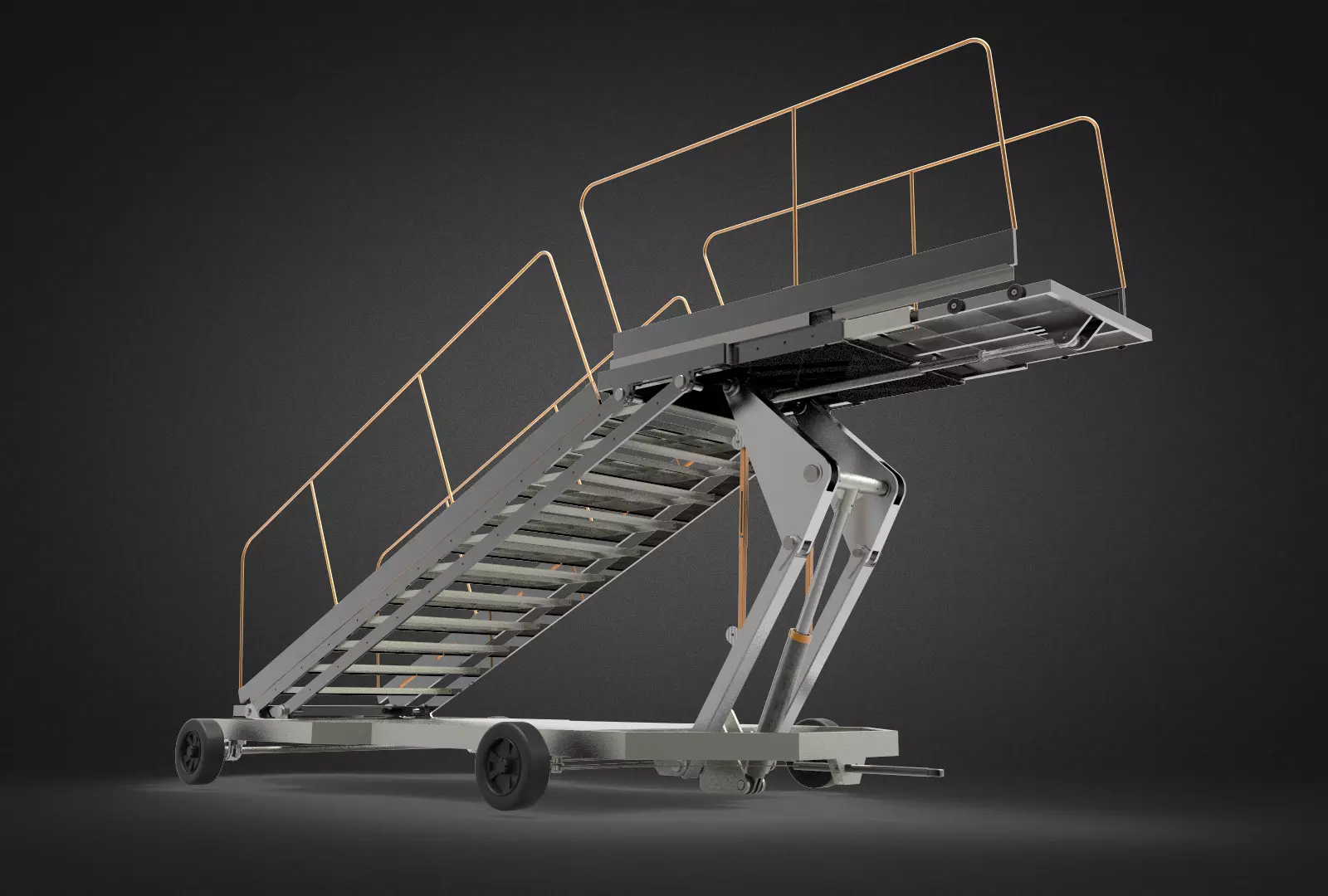 The creation of the airport towable ladder 3D model involved the utilization of advanced computer-aided design (CAD) software. Specifically, the ladder was meticulously designed and modeled using Solidworks, a renowned CAD software renowned for its precision and versatility. The model encompasses various components, including parts assembly and functional interactions, ensuring an accurate representation of the ladder's structure and operation.