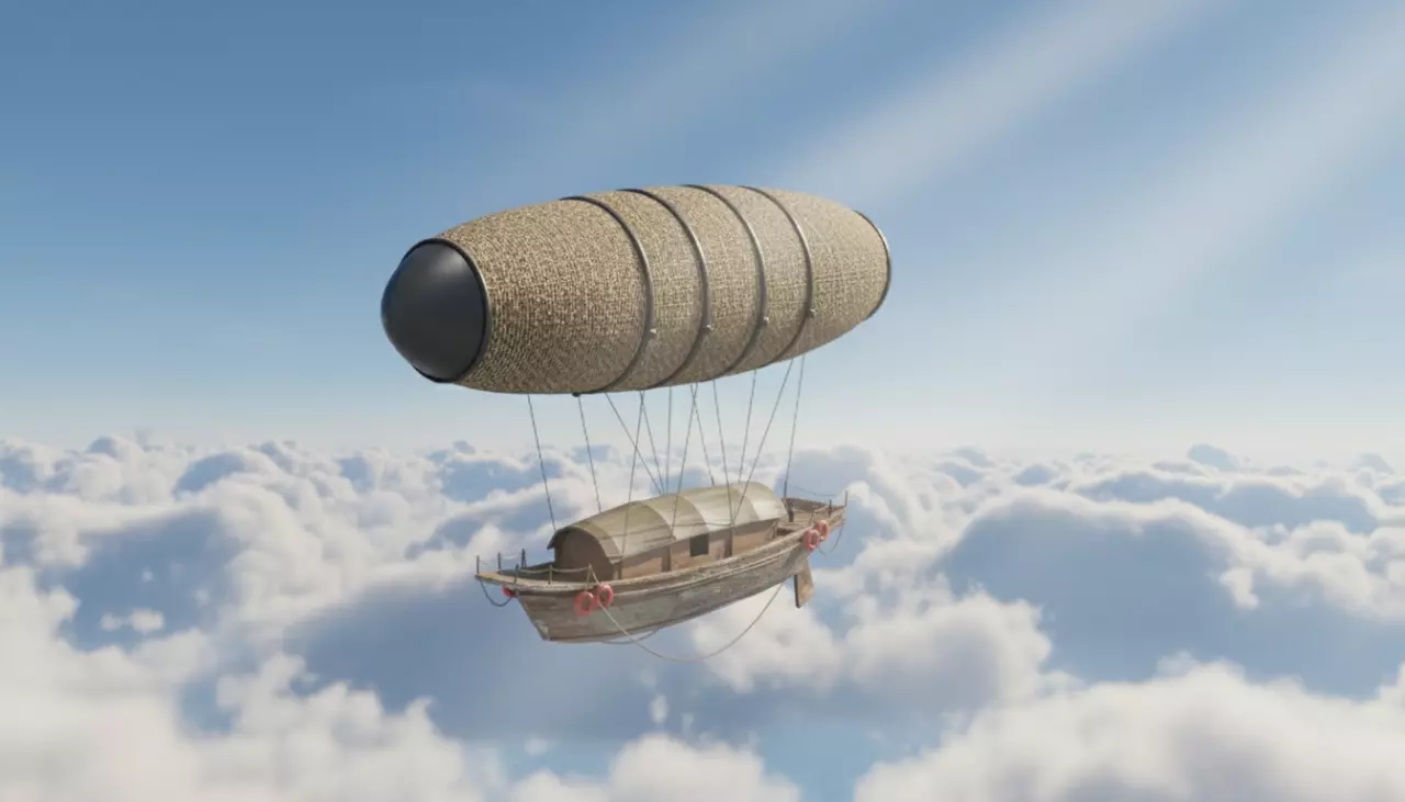 Airship Vintage Flying Boat with Woven Balloon Low-poly 3D model