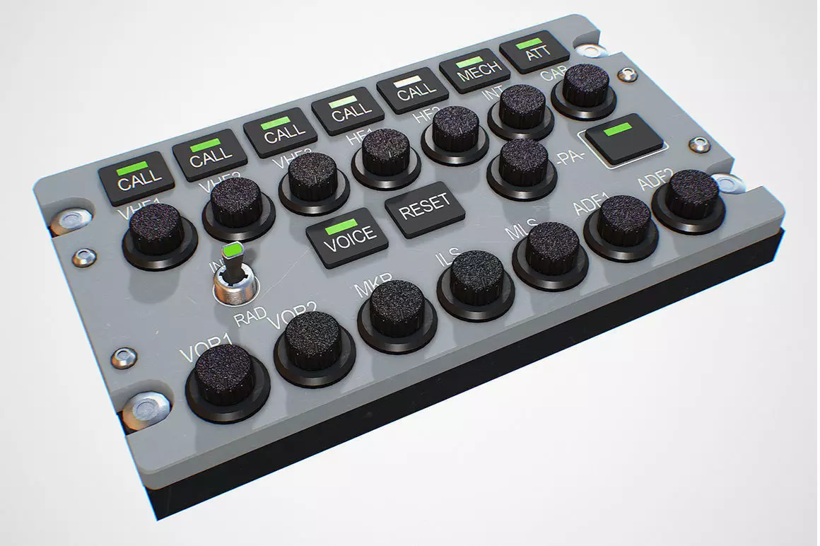 Photorealistic highly detailed 3D model of RADIO Panel.This model is part of the control system of the aircraft Airbus A320The model is ideal for creating a gaming environment or subject visualization.3D model has all the necessary texture maps for PBR renderer.All textures included. The final images are rendered in real time using the PBR method.