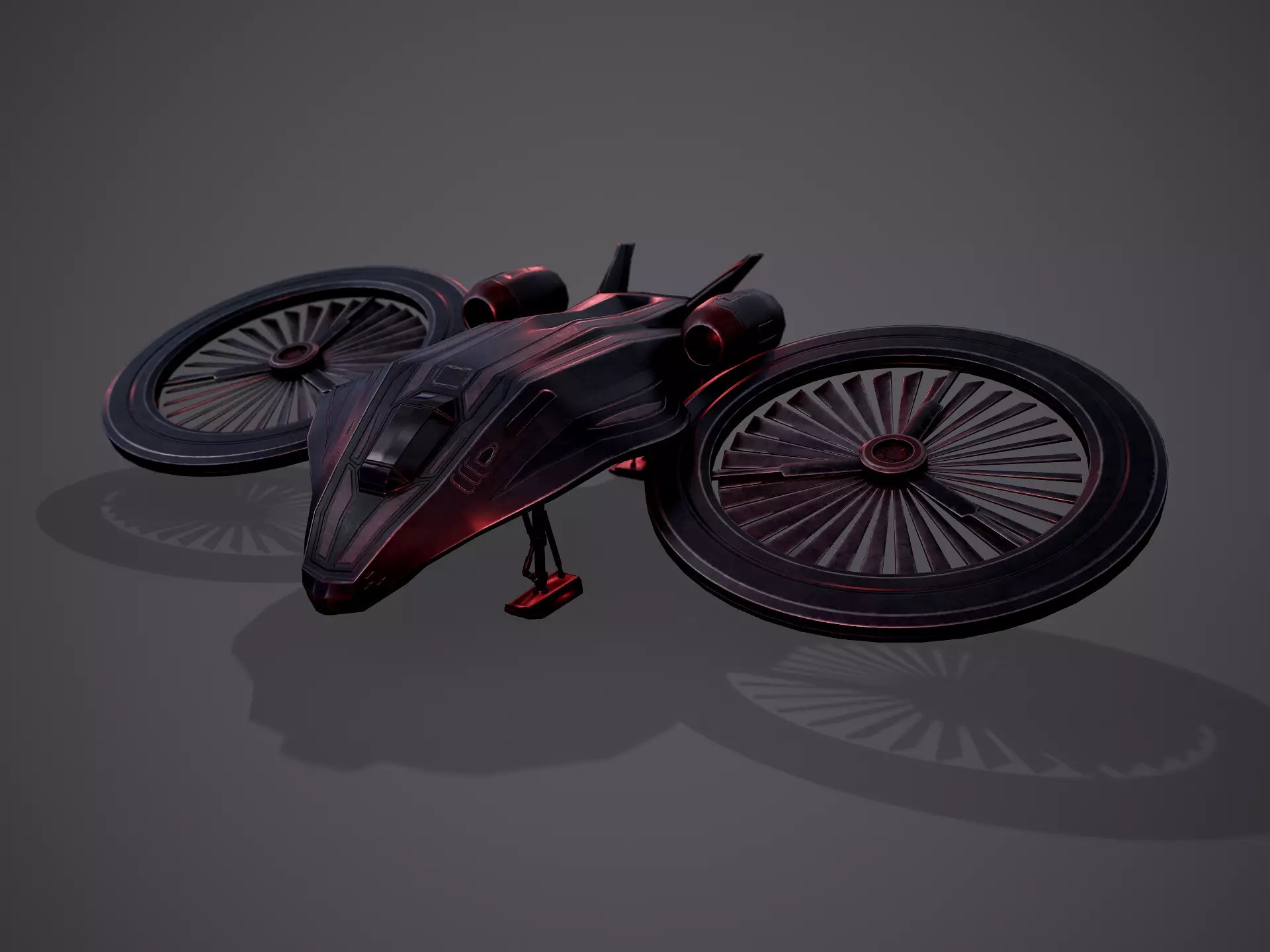 Aircraft with propellers that was inspired by cobra's neck. Some parts of landing gear may resemble Cheyenne dropship fomr aliens, but only slightly. Landing gear as separate model ind different texture set so You can use it without need of the landing gear.