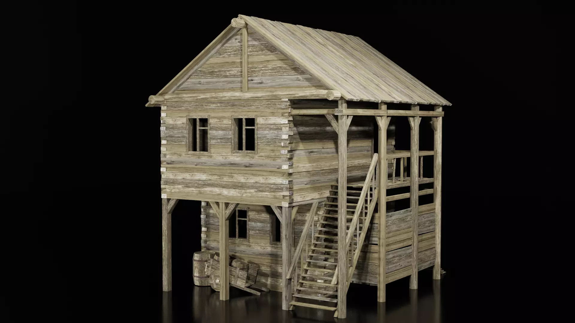 A ready - to-play model of a medieval city hut of AAA quality. It comes with a lowpoly module, ideal for optimizing and rendering games. The building consists of two floors, a separate staircase to the second floor, a rear entrance to the left floor, and a balcony for the second floor is also installed. Inside, the building also looks neat and empty(without furniture and decorations). You can furnish furniture and other objects yourself, depending on your concept and the task of this building. The normals are not inverted, the vertices are not doubled. The grid and map are named correctly and placed in precisely sorted folders. No hidden clutter inside the grid. Seamless and tiled textures are applied. No visible repetitions of the texture. The model is basic (a clean frame), without additional objects, so that you can not arrange the objects yourself, depending on your concept. Every detail is neat and polished. The building fits into the concept of the Middle Ages, an ordinary village, a post of opakalisis, a fantasy Suitable for RPG, 3D jokes, strategy games and other games. FBX + OBJ + blender save formats are included.