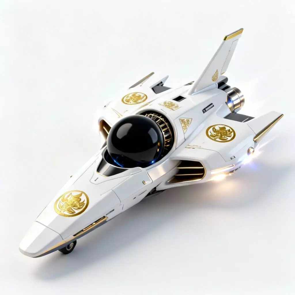 Description: Race with honor and elegance aboard the Imperial Lotus, a high-tech hover-bike that blends advanced sci-fi propulsion with traditional Japanese artistry. Designed for futuristic racing games, cyberpunk RPGs, or as a faction-specific vehicle for elite royal guards. The vehicle features a pristine, aerodynamic white hull accented with gold, symbolizing purity and power. Unlike rugged industrial bikes, this machine is a work of art, featuring a central void-sphere cockpit and sleek stabilizing fins that cut through the air like a katana.