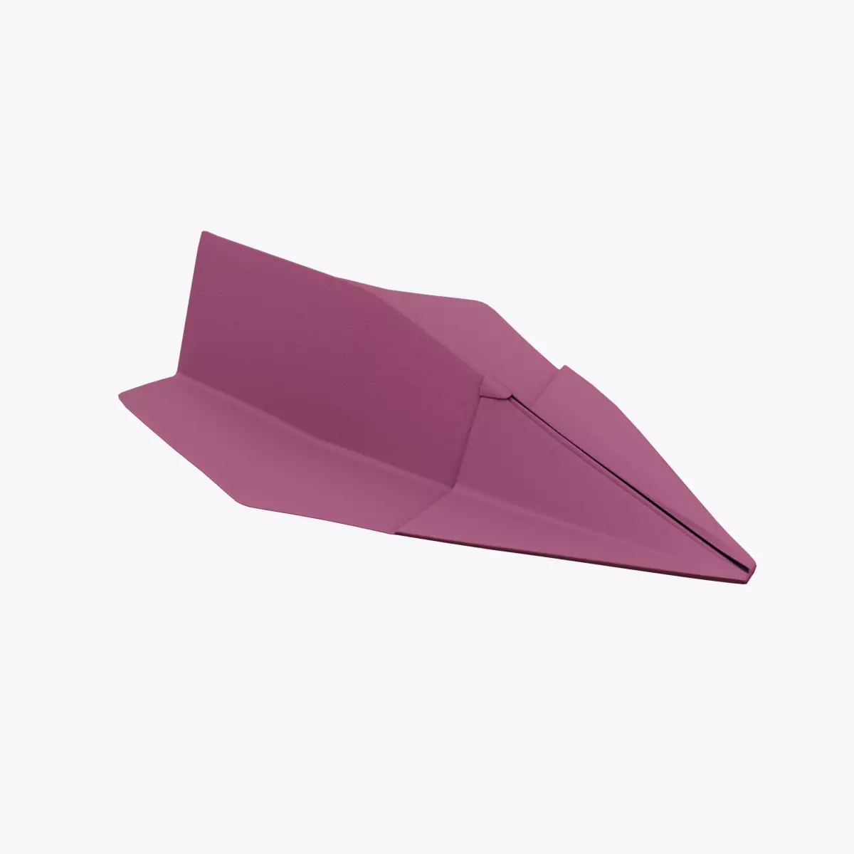 A stylish 3D model of a maroon paper plane with smooth folds and realistic paper details. Ideal for animations, classroom visuals, or creative scenes.
