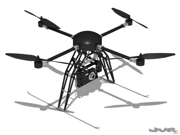 Detailed model of generic quadcopter with camera, ideal for visualization without any problem of copyrights.