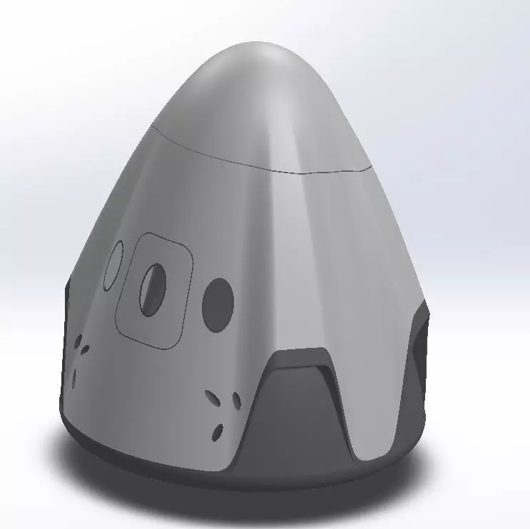 The Dragon capsule features a classical biconic design, with a large, conical pressure vessel for the crew compartment tapering to a smaller, conical trunk section for unpressurized cargo. A latticework of external struts provides structural support and connects the capsule to the trunk. A ring of Draco thrusters encircles the base of the capsule, providing attitude control and maneuvering capabilities during orbital flight. A separate Launch Escape System (LES) with powerful SuperDraco engines sits atop the capsule, designed to propel it away from the launch vehicle in case of an emergency. A docking port on the forward section allows for connection with the International Space Station (ISS) or other spacecraft. Micrometeoroid shielding protects the capsule from debris impacts during space travel.