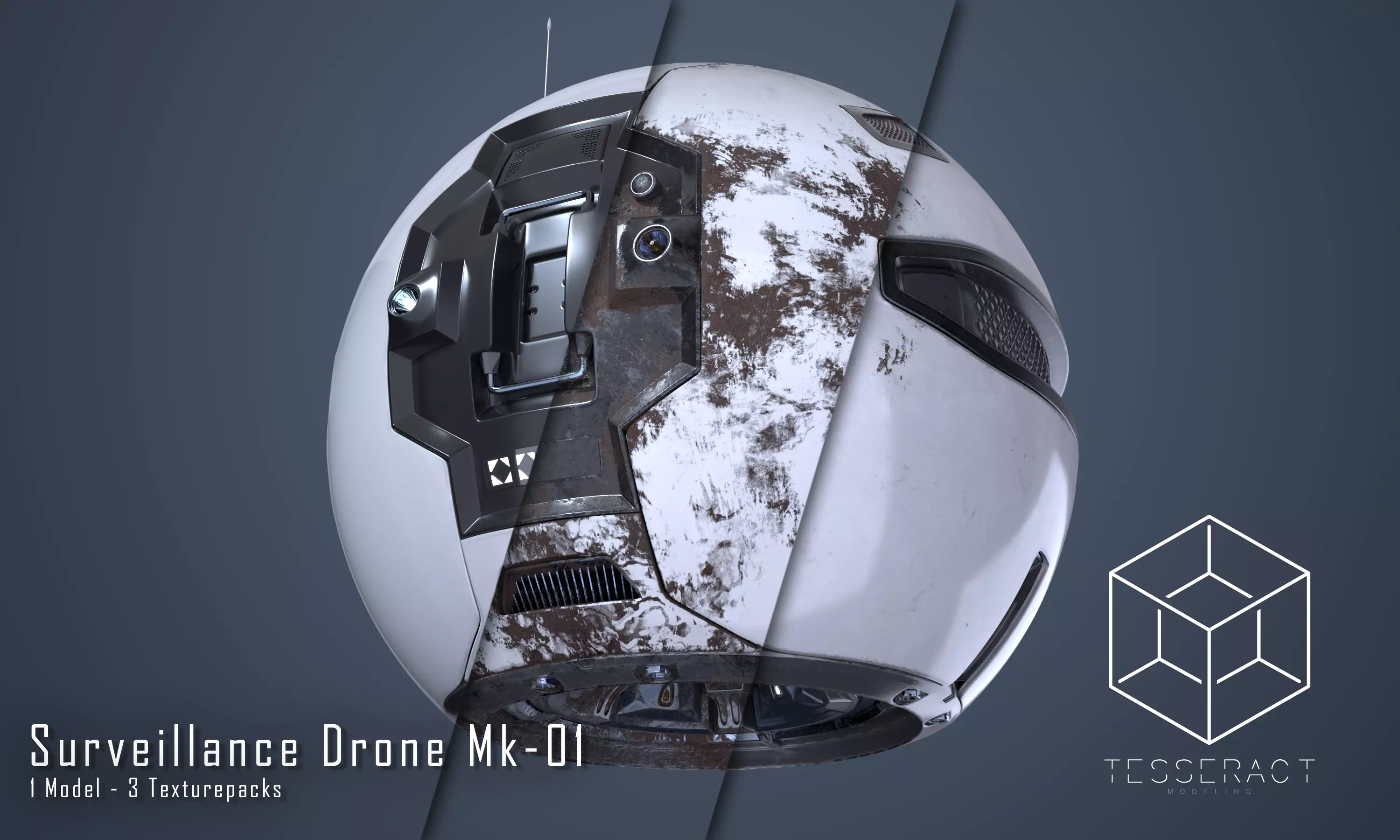With purchasing this asset you get a polygon mesh of a scifi surveillance drone with three different texture packs.