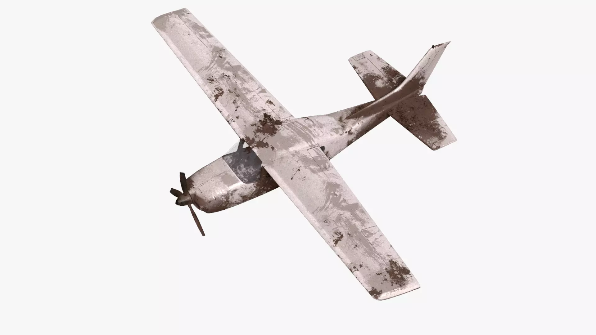 White realistic destroyed propeller plane Low-poly 3D model