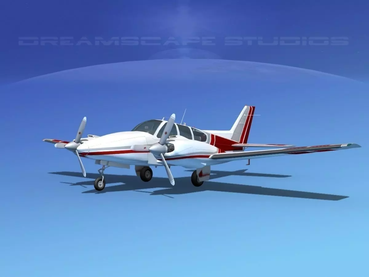 This is one of our high poly models including a lot of geometry. The model is built near to scale within a few inches of actual general dimensions. The model has interior features as moderately detailed cockpit and cabin seating that can be viewed from the exterior through the windows. Model has two 6 cylinder engines. It includes animateable features such as ailerons flaps, rudder, elevators, landing gear retraction, landing gear doors, propellers and cockpit controls. Propellers are animated.