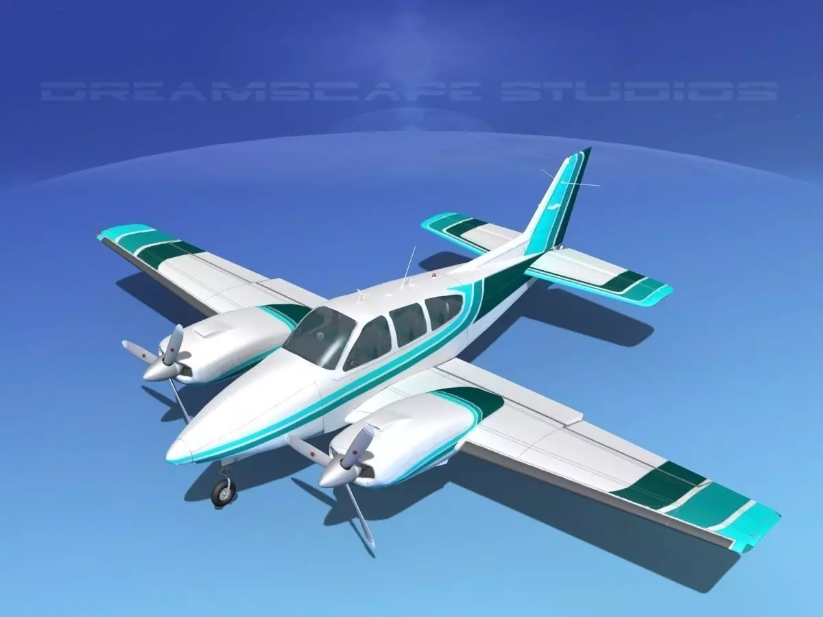 This is one of our high poly models including a lot of geometry. The model is built near to scale within a few inches of actual general dimensions. The model has interior features as moderately detailed cockpit and cabin seating that can be viewed from the exterior through the windows. Model has two 6 cylinder engines. It includes animateable features such as ailerons flaps, rudder, elevators, landing gear retraction, landing gear doors, propellers and cockpit controls. Propellers are animated.