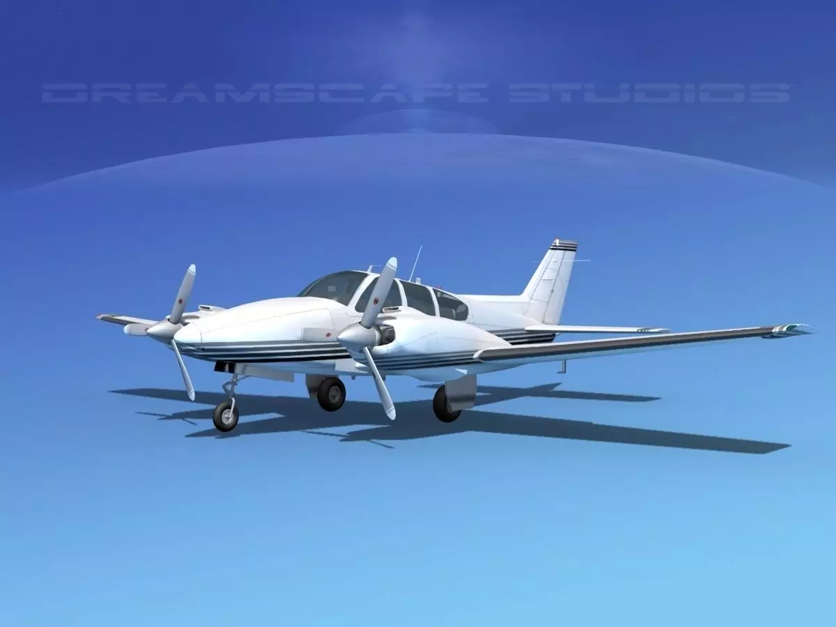 <This is one of our high poly models including a lot of geometry. The model is built near to scale within a few inches of actual general dimensions. The model has interior features as moderately detailed cockpit and cabin seating that can be viewed from the exterior through the windows. Model has two 6 cylinder engines. It includes animateable features such as ailerons flaps, rudder, elevators, landing gear retraction, landing gear doors, propellers and cockpit controls. Propellers are animated.