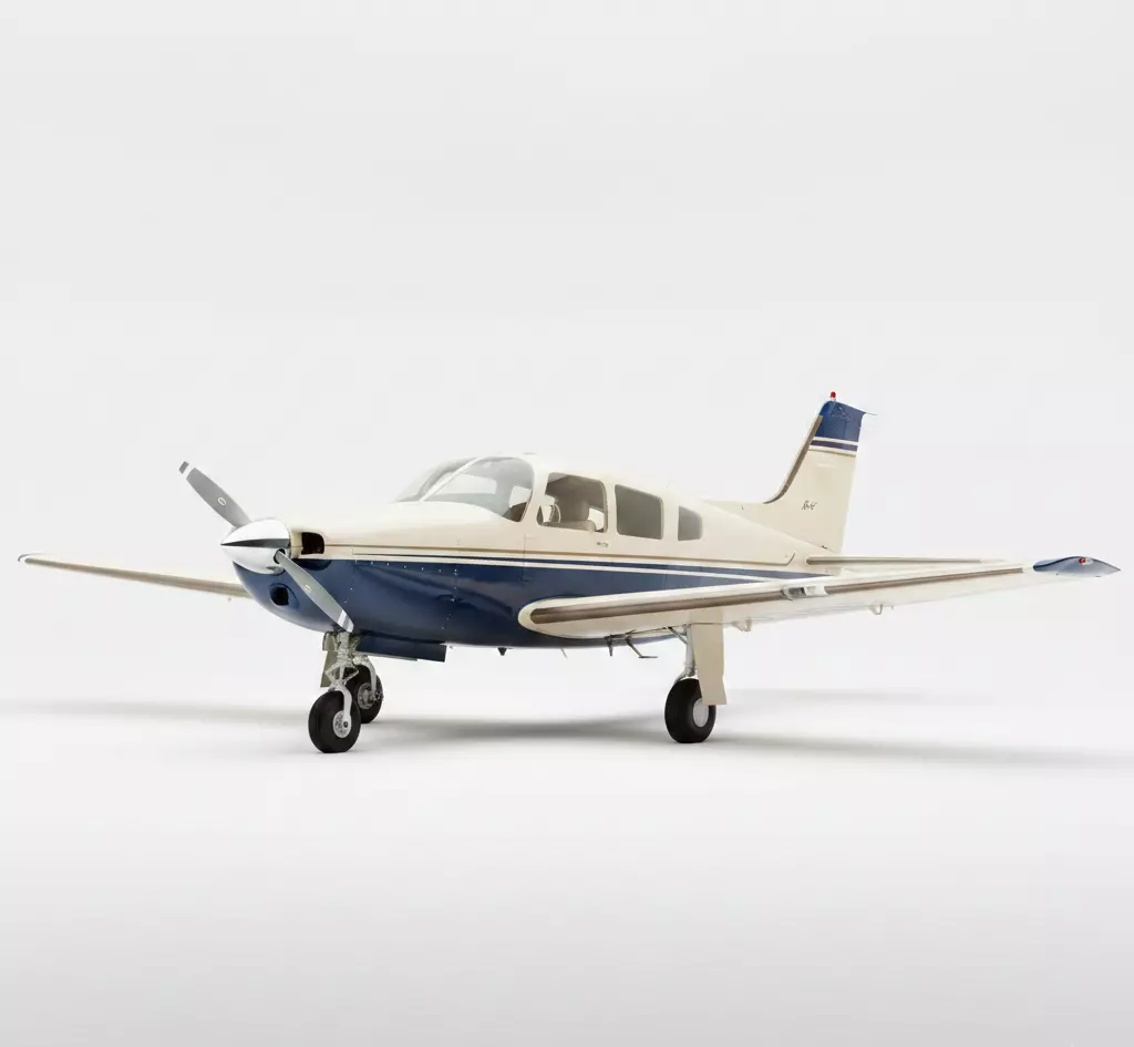 This professional-grade 3D model depicts the iconic Beechcraft Bonanza, a premier high-performance single-engine aircraft recognized for its longevity and elegant engineering. The model features the classic low-wing design and retractable tricycle landing gear, finished in a sophisticated cream and navy blue livery with gold accent striping. Every detail is rendered with precision, from the three-blade constant-speed propeller and detailed engine cowling to the expansive cabin windows that hint at a fully realized interior. Its balanced proportions and clean surfaces make it an ideal asset for flight simulators, aerospace visualizations, or high-end architectural renders requiring a touch of private aviation luxury.