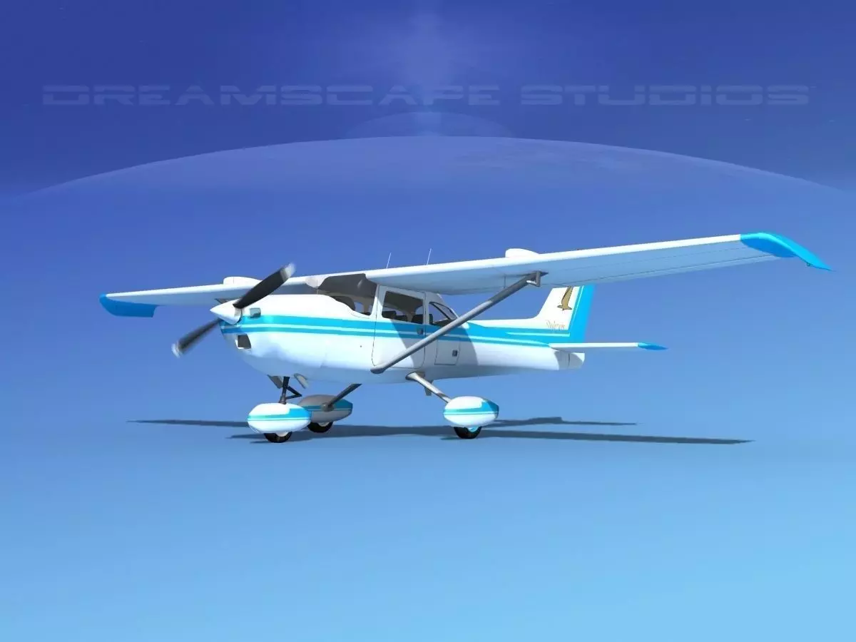 This model 3D Cessna 172 is built very near to scale of actual general dimensions. It has many animateable features including ailerons, flaps, elevators, rudder, retractable landing gear and nose gear doors. Propeller is animated. This model is fairly detailed and includes the ELT antenna and pitot tube as well as some interior cabin features and controls. It has a nice instrument panel. It comes in more than 10 different formats. This model also features the wing fences on the top surface of the wing as well as the drooping wingtips of the high performance STOL wing of the Robertson conversion. This model has additional details, modeled engine and mount, other details added and better textures provided as part of the new updated Cessna 172 STOL model. The textures and materials are included as shown here. The model is also provided in 8 formats for your immediate downloading.