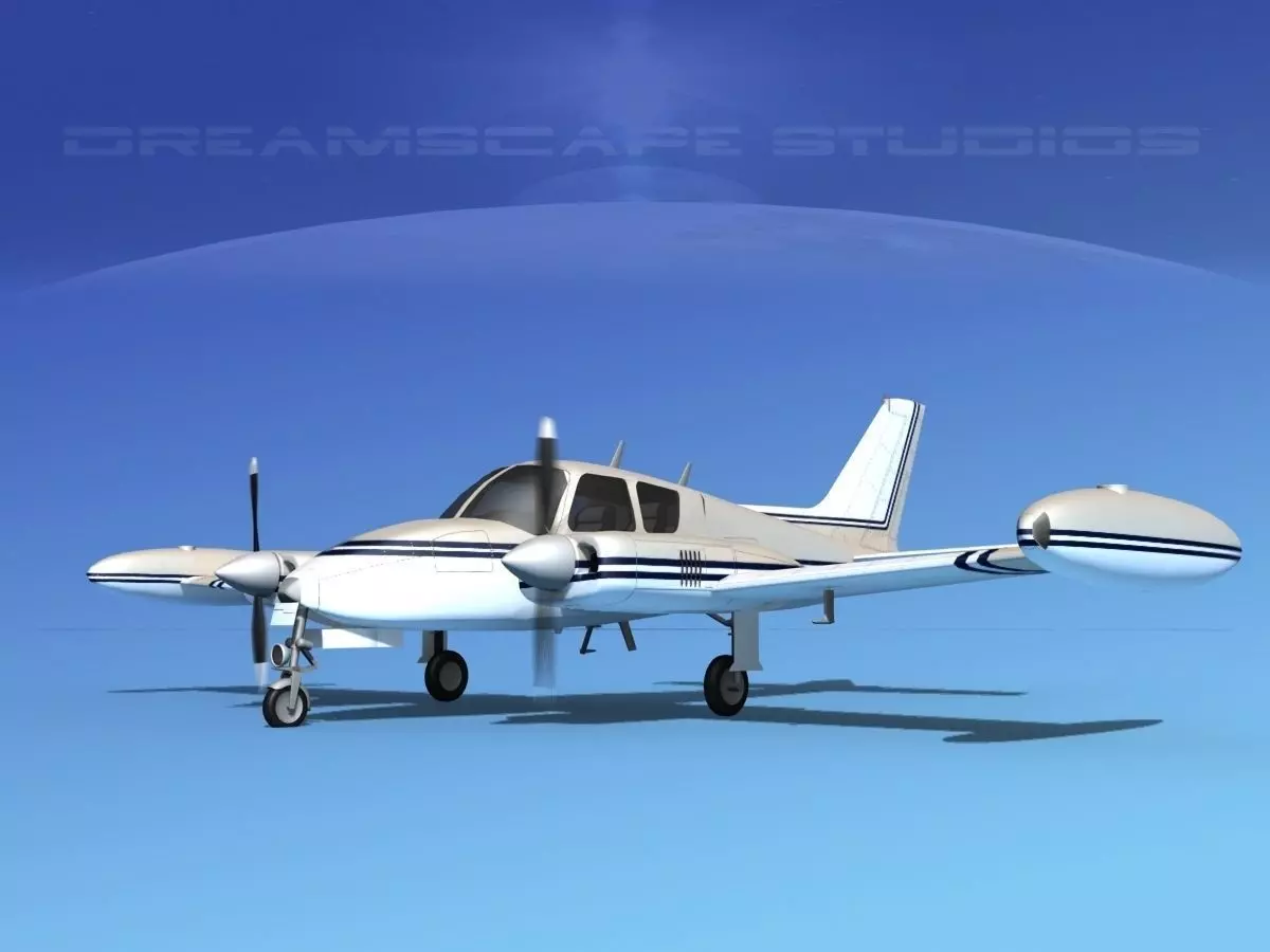 This model was built near to scale, within 3% of general dimensions. It includes a lot of exterior detail and general cabin and cockpit modeling. The model is fully textured. It is representative of the Cessna 310D built in 1964. This model also has animateable landing gear retraction, flaps, landing gear doors, ailerons, elevators and rudder as well as animated propellers. This model also has engines and oil coolers modeled and textured. Tires and wheels are animateable also. The model includes a textured instrument panel and some animateable controls.