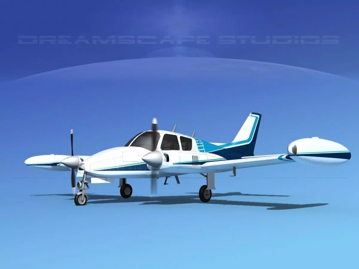 This model was built near to scale, within 3% of general dimensions. It includes a lot of exterior detail and general cabin and cockpit modeling. The model is fully textured. It is representative of the Cessna 310D built in 1964. This model also has animateable landing gear retraction, flaps, landing gear doors, ailerons, elevators and rudder as well as animated propellers. This model also has engines and oil coolers modeled and textured. Tires and wheels are animateable also. The model includes a textured instrument panel and some animateable controls.