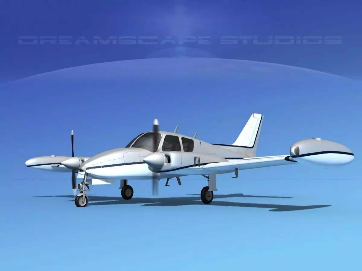 This model was built near to scale, within 3% of general dimensions. It includes a lot of exterior detail and general cabin and cockpit modeling. The model is fully textured. It is representative of the Cessna 310D built in 1964. This model also has animateable landing gear retraction, flaps, landing gear doors, ailerons, elevators and rudder as well as animated propellers. This model also has engines and oil coolers modeled and textured. Tires and wheels are animateable also. The model includes a textured instrument panel and some animateable controls.