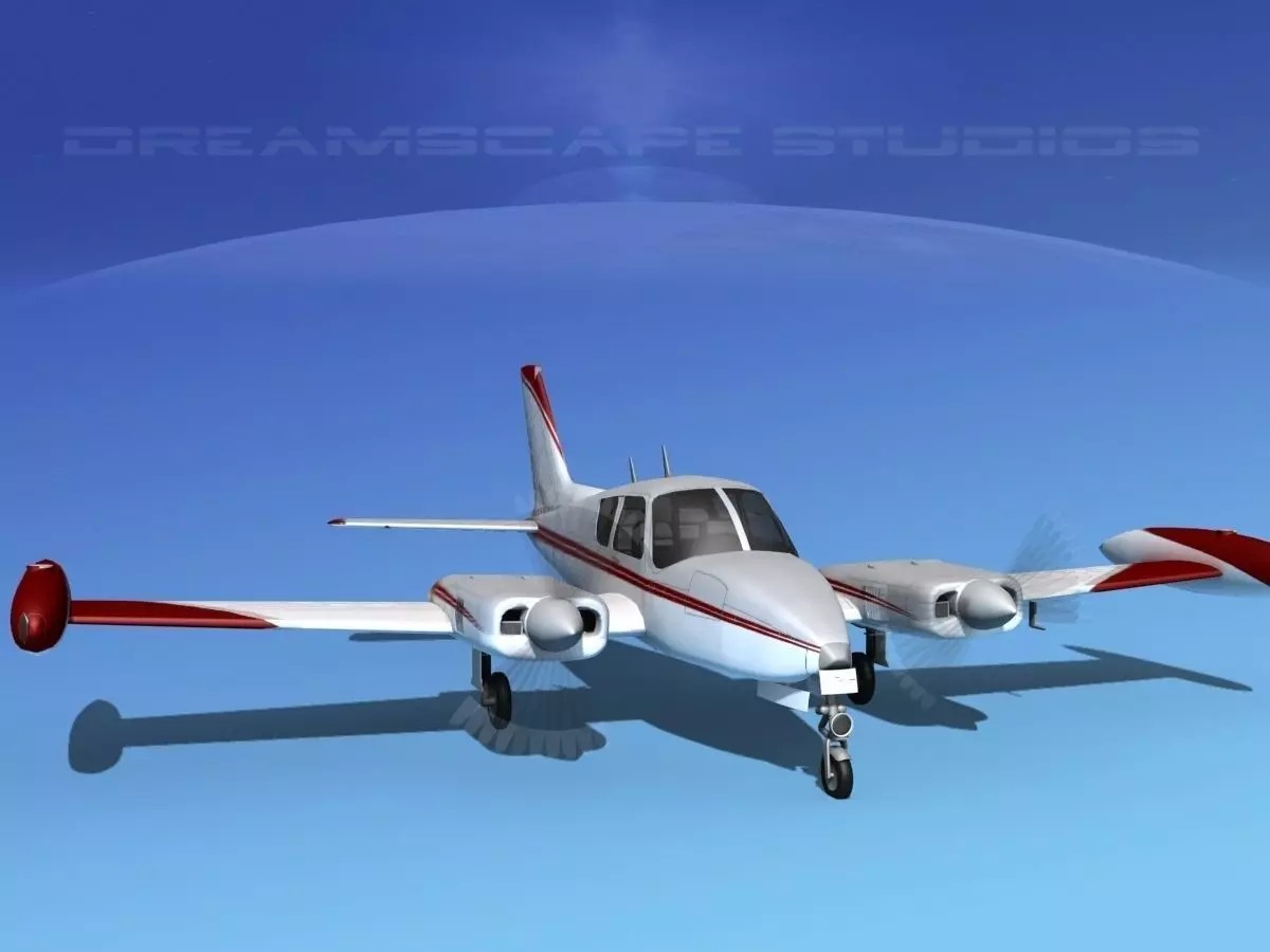 This model was built near to scale, within 3% of general dimensions. It includes a lot of exterior detail and general cabin and cockpit modeling. The model is fully textured. It is representative of the Cessna 310D built in 1964. This model also has animateable landing gear retraction, flaps, landing gear doors, ailerons, elevators and rudder as well as animated propellers. This model also has engines and oil coolers modeled and textured. Tires and wheels are animateable also. The model includes a textured instrument panel and some animateable controls.