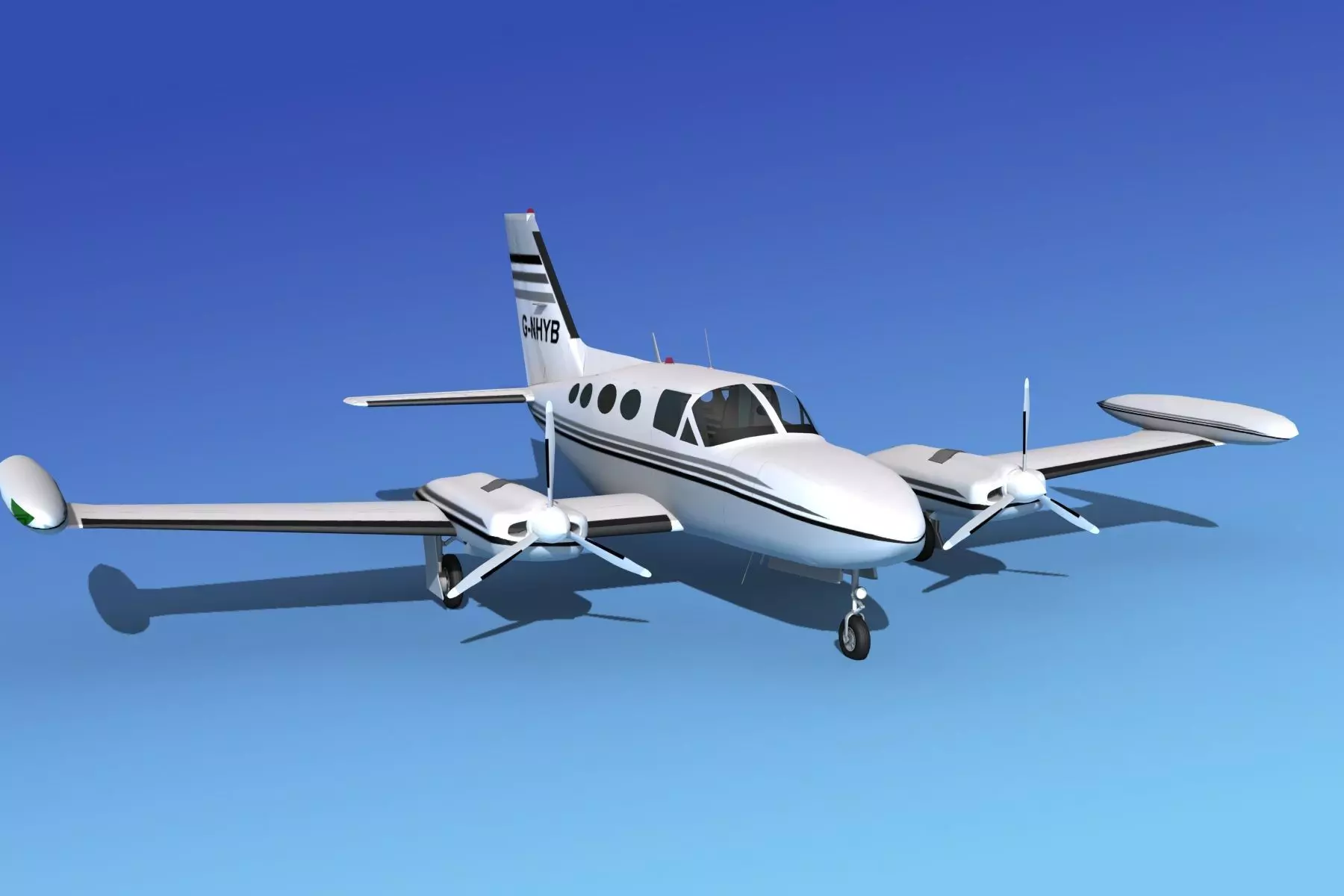 This model is built near to scale within a few inches of actual general dimensions in detail and fully textured. It hasmany animatable features including flaps, elevators, rudder, ailerons,propellers, landing gear and doors. The cockpit is viewable from the exterior showing detail. The interior cabinseating is also included. This model is also available in a wide range of formats . The Cessna 421 Golden Eagle is a further development of theearlier Cessna 411. It is a light twin-engine personal civilian transport aircraft. The Cessna 421 has seating for 6 passengers and crew. It can be flown by one or two crew members. The Cessna 421 uses Continental GTSIO-520-D engines. The propeller isgeared to reduce rpm off the crankshaft of the engines. The 421 a models were produced beginning in1967 and was redesigned and marketed in 1970 as the 421B. Some 421s were modified to accept the turboprop engines which made them very much like the Cessna 425.