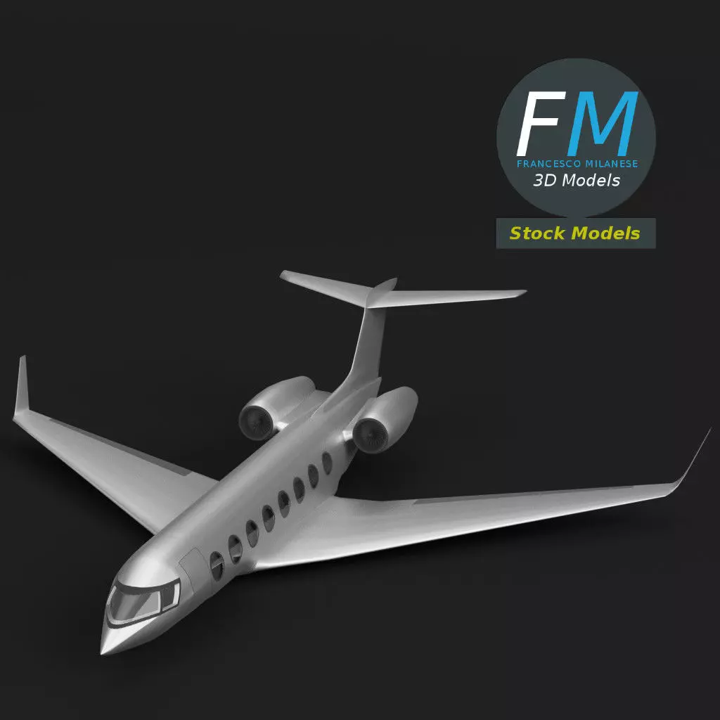 Business jet 3D Model, landing gear up version. NOT MODELED INSIDE! 2 individual objects (business jet, glasses), each one with its own non overlapping Production-ready 3D Model, with PBR materials, textures, non overlapping UV Layout map provided in the package.