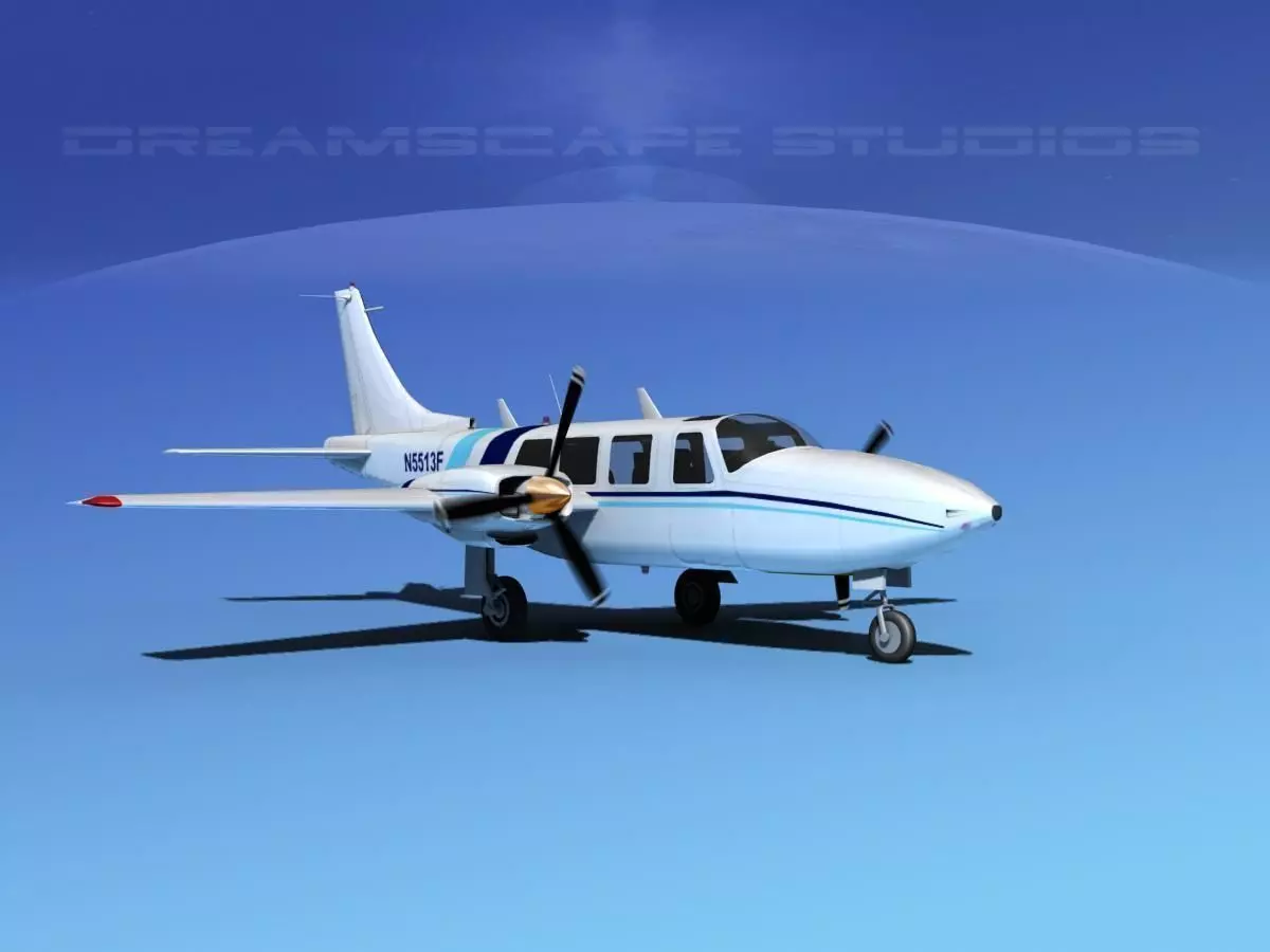 This model is very detailed and built very near to scale based on actual dimensions . It includes animateable control surfaces and landing gear. The twin three-bladed propellers are animated. The cockpit and instrument panel are very detailed. The cabin is moderately detailed and seating is also included. This model is available in several different formats. The model is fully textured and comes with all materials and textures required.