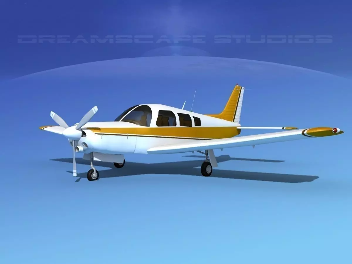 This model is near to scale. It was built within a few inches of actual general dimensions. It has animatable ailerons, flaps, stabulator, rudder and propeller. The cockpit includes a fairly detailed instrument panel with some of the controls and instruments. It also has 4 seats in the cabin. The landing gear can be retracted or extended for animation.