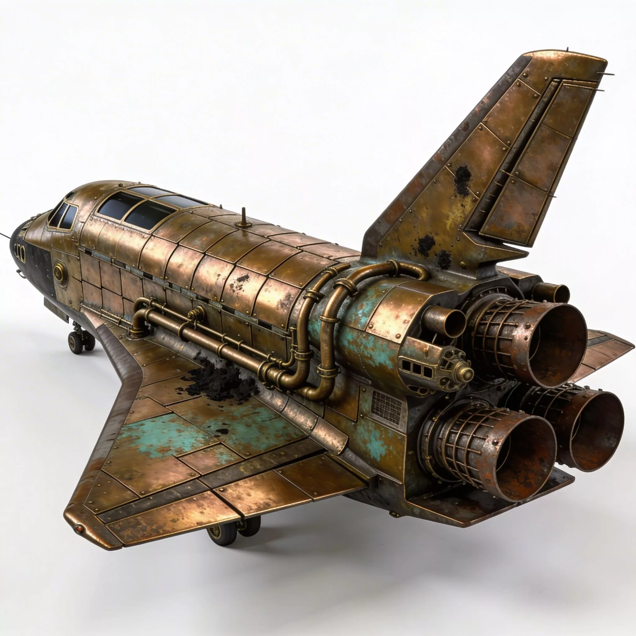 Tagssteampunk space shuttle orbiter ship vessel retro futuristic oxidized copper rusted brass pipe fantasy victorian asset prop industrial aether craft engine exhaust rear 3d model