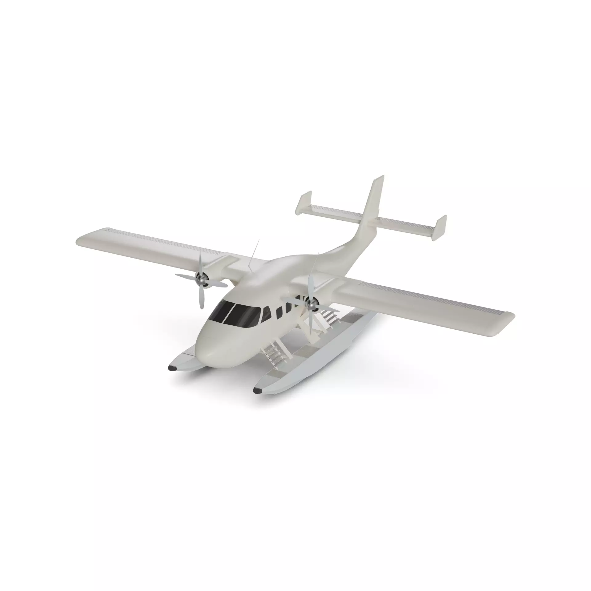 An elegant seaplane in a pearlescent white hue, featuring a unique tri-wing design and a retractable landing gear system, blending classic aesthetics with modern innovation for civilian air travel in the present day.