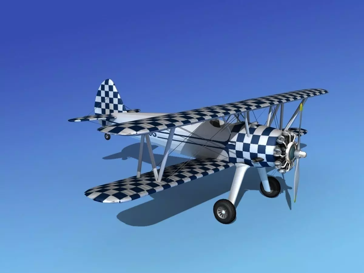 The PT-17 model was updated Jul 2010 with additional detail, new wings, better textures and more features. PT-17 is built near to scale and includes a detailed radial engine. The model is fully textured and more accurate. The propeller is more detailed and accurate and an instrument panel has been added. The air suction horn and pitot tube have also been added. This model comes in a wide range of formats. The PT-17 was used in World War II as a basic flight instruction aircraft by nearly all branches of the services. The Stearman was a biplane of simple construction with a radial engine for power. They were relatively inexpensive to build, sturdy and stable. Many hundreds were built and in service before, during and after World War II. After the war many were sold to the surplus aircraft market and came into civilian hands. These were used as flight trainers, patrol aircraft, crop dusters and personal aircraft. Some were modified and used for aerobatics in air shows. Quite a few are still flying and remain a prized possession of those who own them.