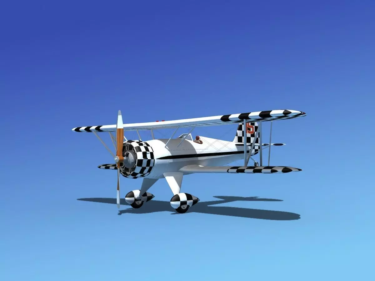 WACO YMF-5 medium poly biplane was built near to scale within a couple of percent of actual general dimensions. It has high resolution textures and is available in a wide range of formats. It has a lot of detailed modeling including the radial engine, cockpit and much more. The model includes many animateable features such as ailerons, elevators, rudder, propeller and controls. This model was developed for animation and rendering in-flight. It may be used for other purposes such as a static model to populate an airport scene.