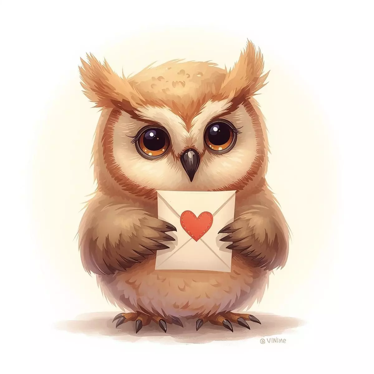 It is equipped with a thematic accessory: a sealed white love letter featuring a small red heart, held delicately in its talons at the center of its chest.