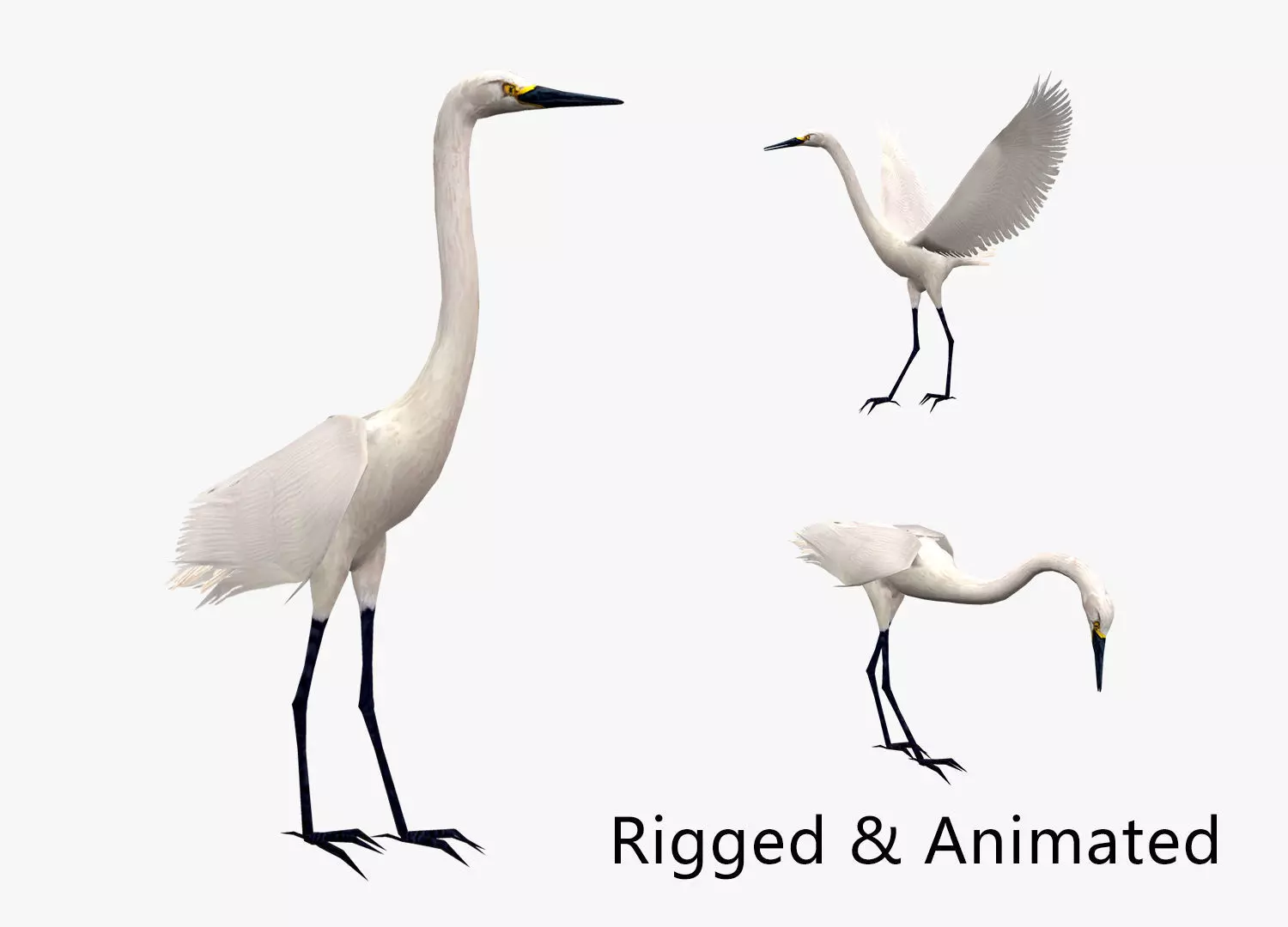 animated egret Low-poly 3D model