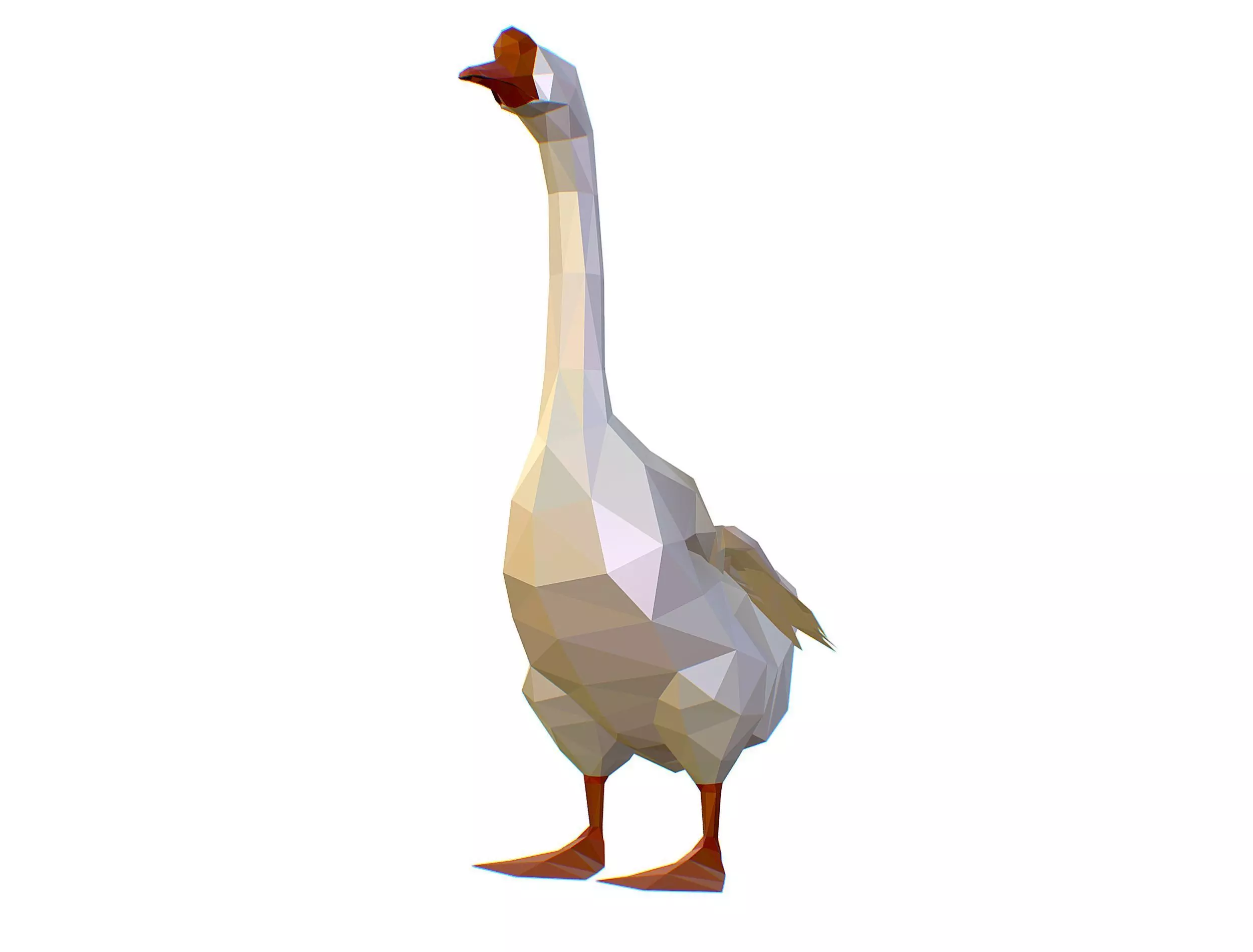 Animated White Goose Lowpoly Art Style I created a 3D model: Animated Goose Lowpoly Art Style. This unique model features a goose with black wings, animated in a captivating lowpoly art style. The model utilizes only materials and does not include any textures. Perfect for game development, animations, or creative projects, this goose adds a touch of magic and fantasy to any scene.