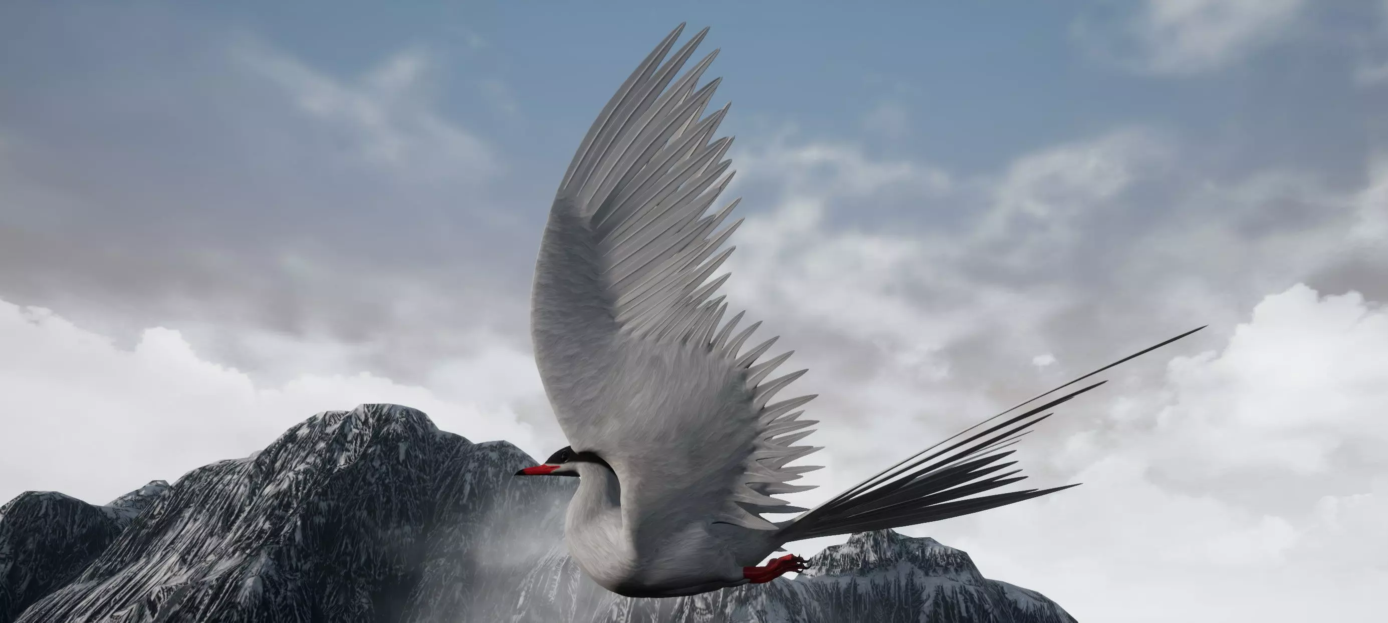 My model of a Arctic Tern bird with 16 animations and poses. In the wild these birds cover the Arctic and sub-Arctic regions of Europe, Asia, and North America. Modeling, rigging and animating were accomplished using Blender. The textures and materials were created using Blender and the graphics editor Paint . net. The textures/materials sized to 4096x4096 and 1024x1024, have layers which can be customized and added with a node system. Unreal assets for the animations & model are avaliable as shown in the first preview image. (The snow map from the preview image is not included).