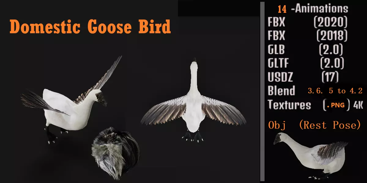 Domestic Goose Bird Low-poly 3D model