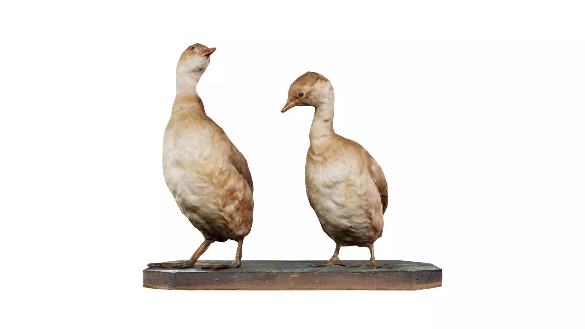 Polygonal Miniatures presents ducklings, a model from our 3D scanned catalogue. The model, ducks on a wooden stand is obtained by photogrammetry, and scanned using SLR camera's.Processing takes place in Zbrush and Photoshop and the resulting 3D model has unwrapped, non overlapping UV's, and a texture and normal map. Before publishing, we make sure the model has real world scale (meters), correct shader setup and is centered at the origin.Apart from the various file formats, we also offer a Blender file with material and textures set-up, ready for export and rendering. More info can be found below: