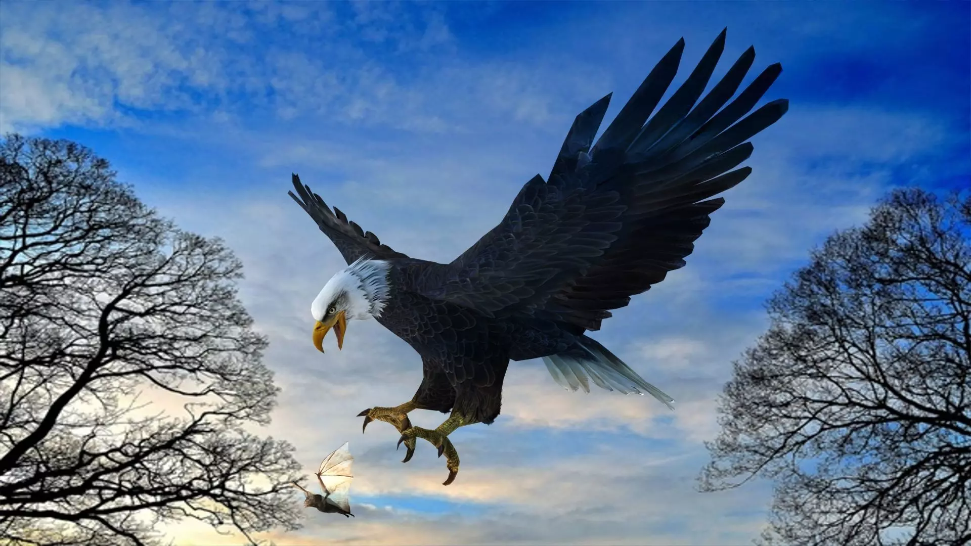 Eagle Attack 3D Studio Max 2020 version is available 2017 version also is added and FHD resolution rendered with V-Ray 3.6 plugin. It is at real sizes in 1:1 scale. The unit is centimeters. It includes the entire scenes, lighting, cameras, materials and textures. Many file formats are available. Images are in FHD resolution.