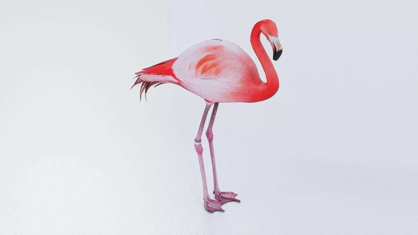 This 3D low-poly model of a flamingo captures the elegant and distinctive silhouette of the bird with simplified yet expressive geometry. Featuring its iconic long, slender legs, curved neck, and vibrant pink plumage, the model retains key anatomical features while maintaining a clean, stylized aesthetic suitable for animation, game development, or visual storytelling. The texture details emphasize the softness of feathers and the unique coloration, making it both visually appealing and functionally efficient for real-time applications.