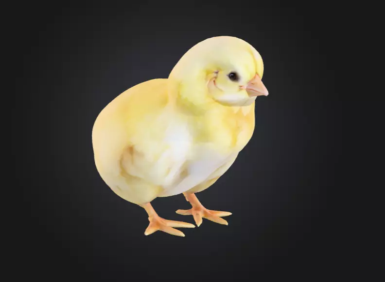 The gentle color gradient of creamy yellow and pale gold gives the chick a natural softness, while the smooth, rounded form enhances its appealing silhouette. Every detail — including the tiny wings, glassy eyes, and realistic proportions — is modeled with precision to create a sense of warmth and authenticity.