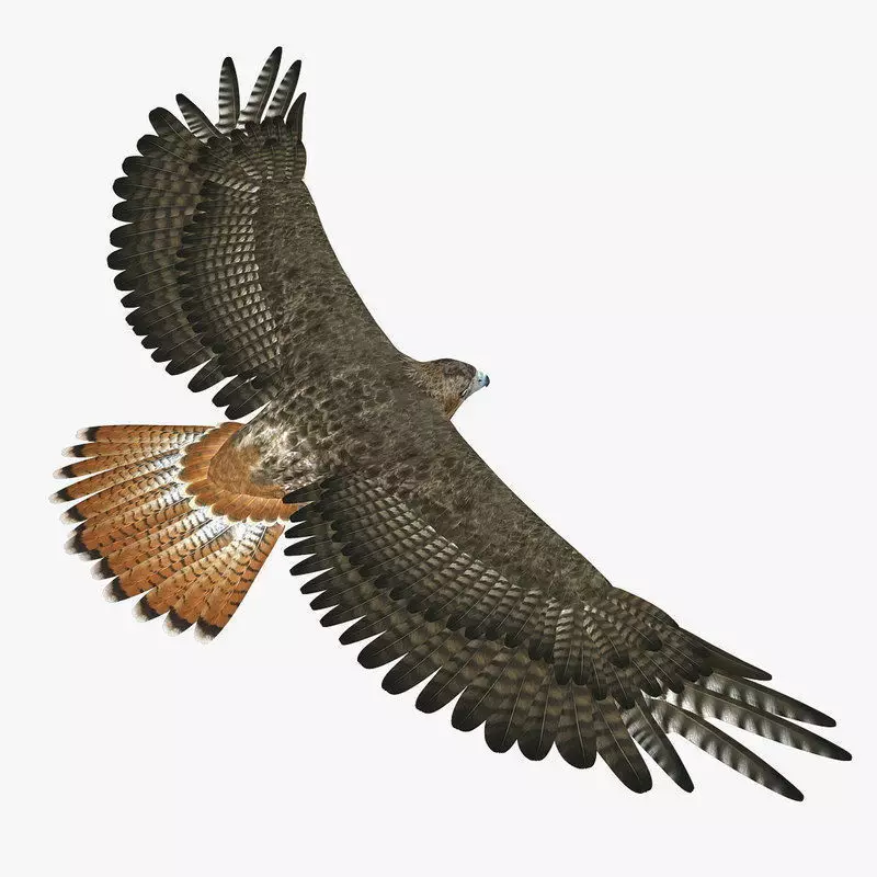 High detailed photorealistic Hawk (Red-tailed Hawk) FULLY RIGGED AND ANIMATED, UV mapped and smoothable, made with Maya.