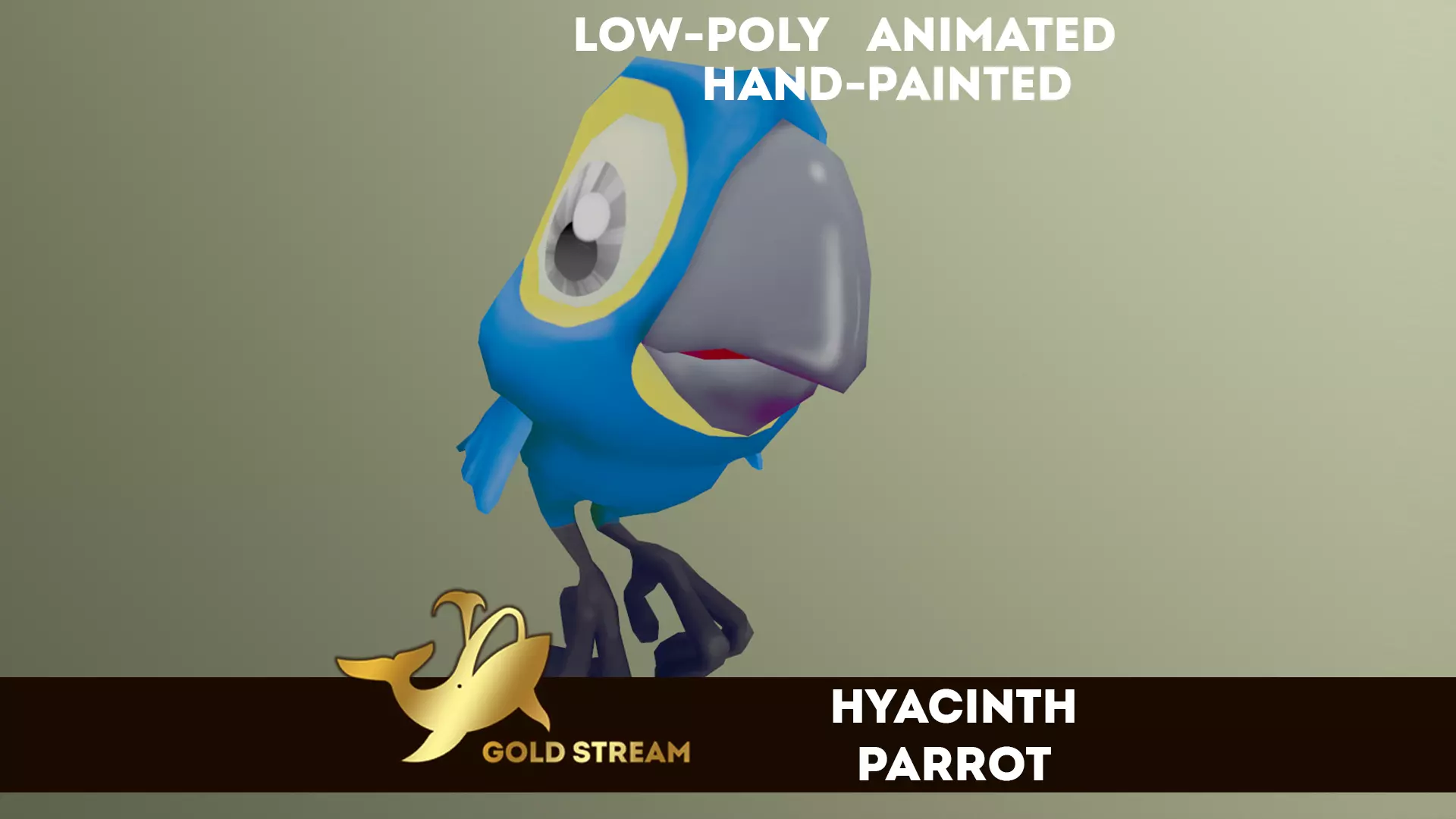 Animated low-poly 3D model of Hyacint Macaw in cartoon style for video games, mobile applications and other.