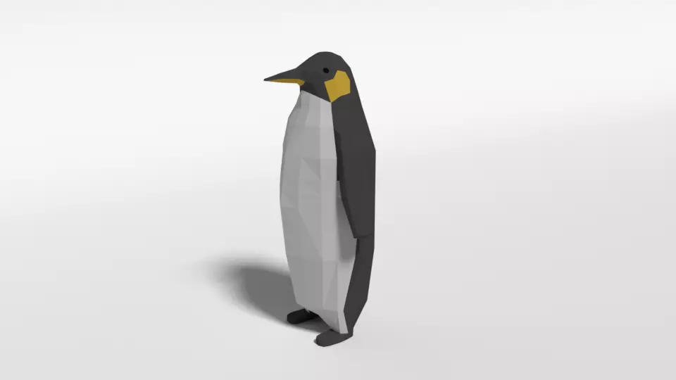 This is a low poly 3d model of a penguin. The low poly penguin was modelled and prepared for low-poly style renderings, background, general CG visualization.