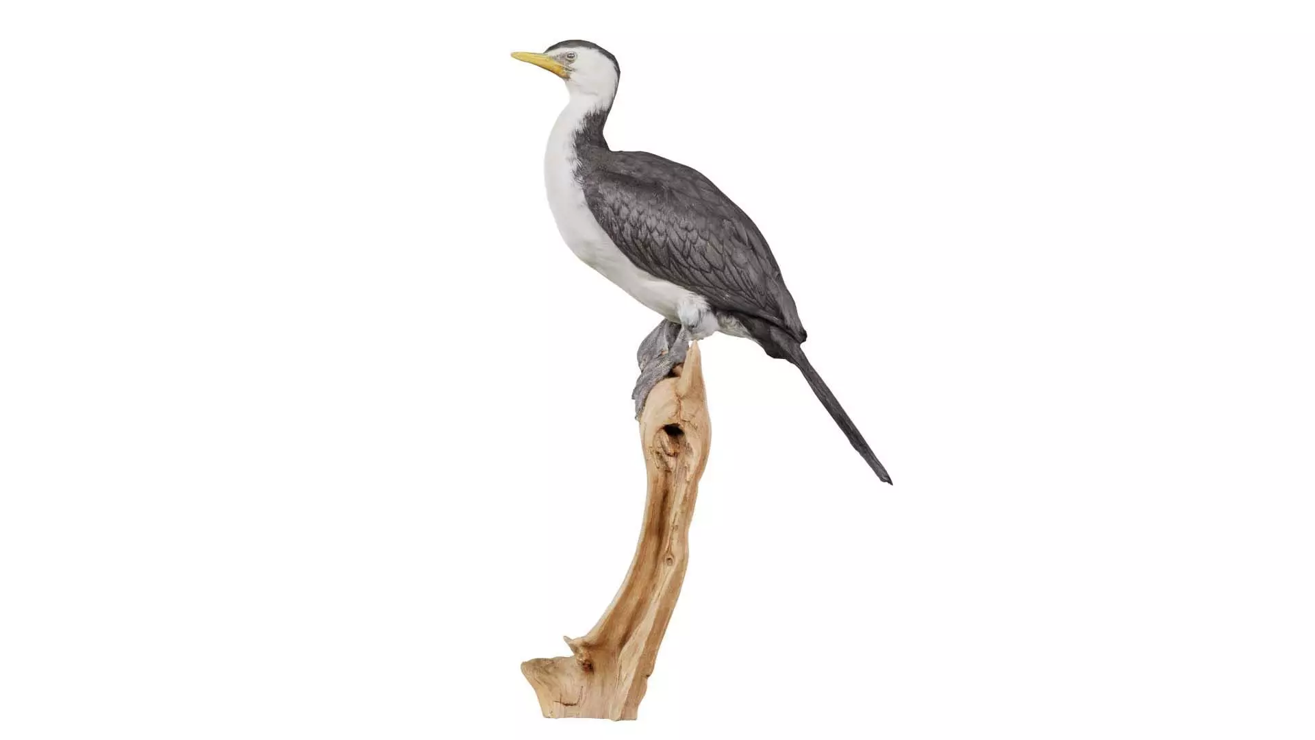 Polygonal Miniatures presents pied cormorant phalacrocorax varius bird, a model from our 3D scanned catalogue. The model, a bird is perched on a branch is obtained by photogrammetry, and scanned using SLR camera's.Processing takes place in Zbrush and Photoshop and the resulting 3D model has unwrapped, non overlapping UV's, and a texture and normal map. Before publishing, we make sure the model has real world scale (meters), correct shader setup and is centered at the origin.Apart from the various file formats, we also offer a Blender file with material and textures set-up, ready for export and rendering. More info can be found below: