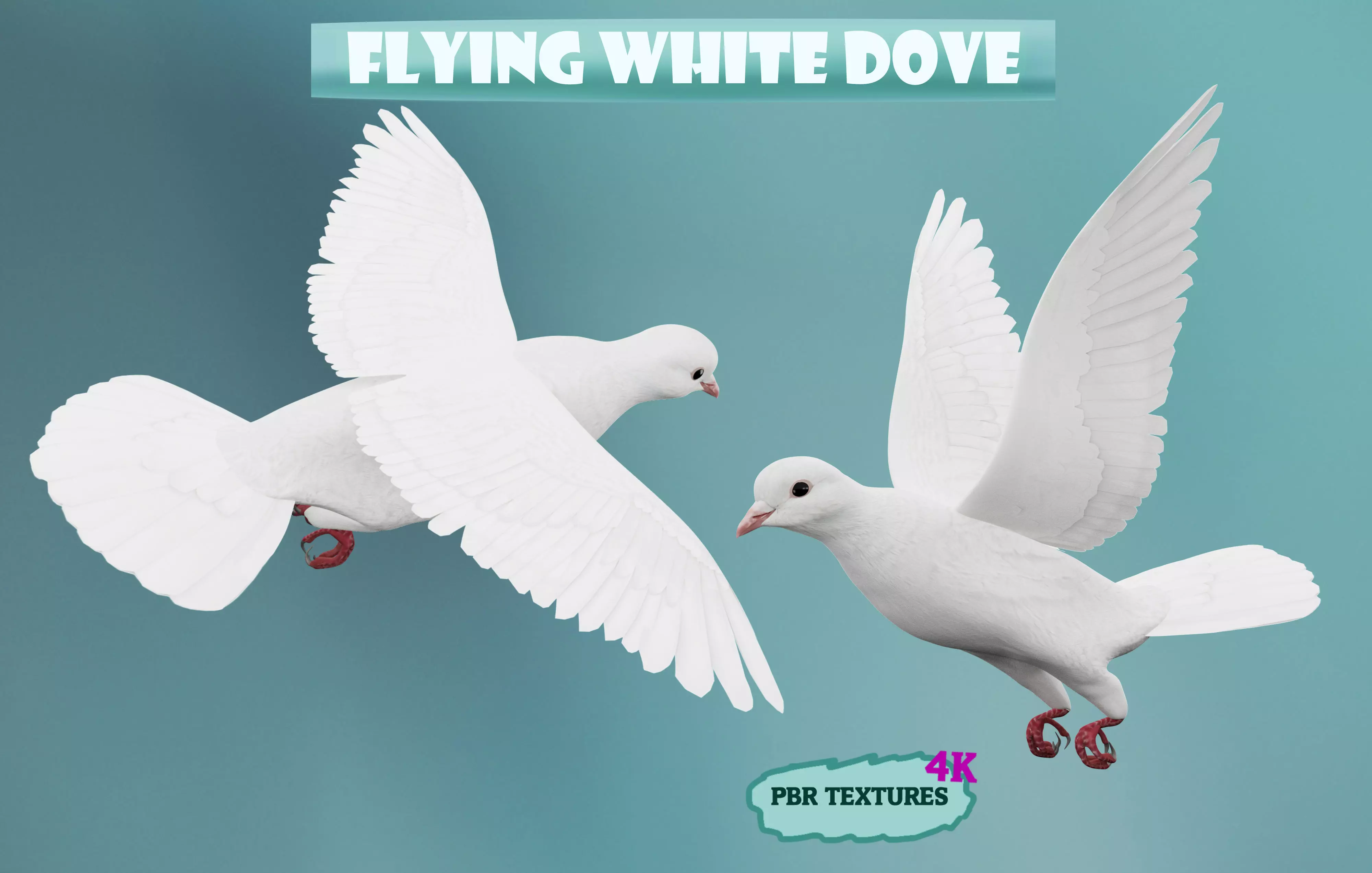 Realistic Animated White Dove Low Poly Model With Realistic Animations,