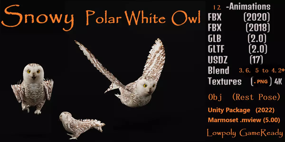 Snowy Polar White Owl Low-poly 3D model