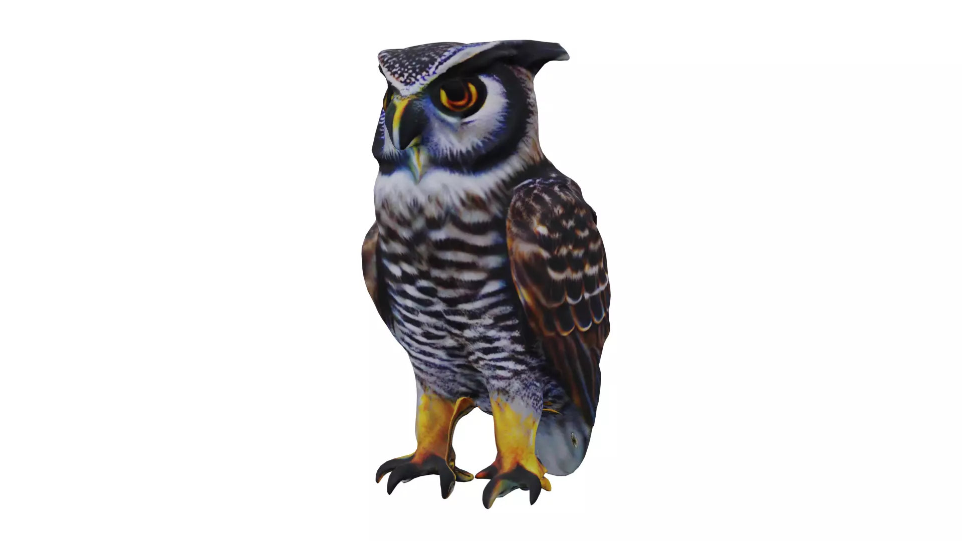 Introducing the Verreaux's Eagle Owl, meticulously crafted and PBR optimized for immersive gaming experiences. With a polygon count of 10,495 and 10,495 vertices, this model boasts intricate details while ensuring smooth performance. Its 4K texture, featuring normal, roughness, RGB, and metallic maps, brings out the owl's stunning realism.